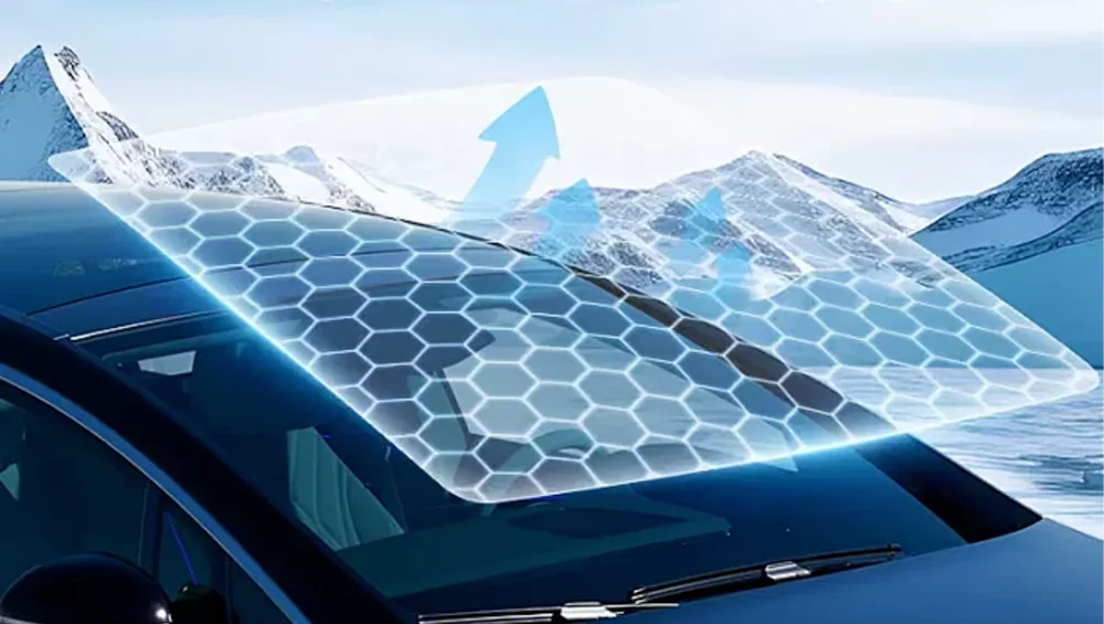 HydroShield Water Film Barrier Technology is a groundbreaking innovation designed to eliminate the frustration of poor visibility and driving challenges caused by bad weather. Using advanced nano-coating technology, it applies ultra-fine particles evenly across the glass surface, creating a powerful water-repellent barrier.