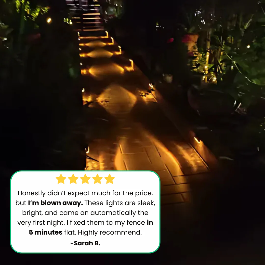Imagine coming home to a garden bathed in soft, welcoming light. Clear pathways, a safe feeling along the fence. No wires. No buttons. No stress.